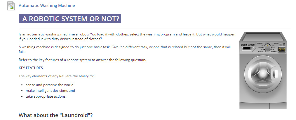 Why is a driverless car considered to be a robotic system, but an automatic washing machine is not (or is it)?